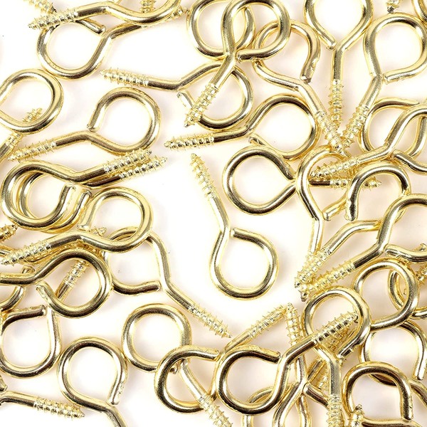 - Pack Include - 100 Pieces of Brass Plated Eye Bolts Small Screw of Size 16mm (5mm Eye Diameter). Ideal For Hanging Frames & Ornaments.
