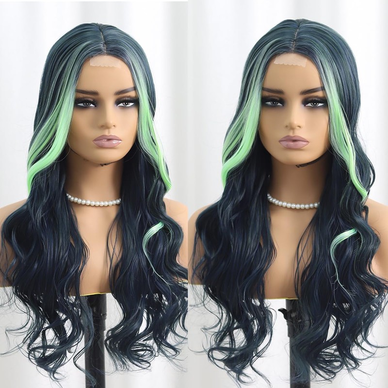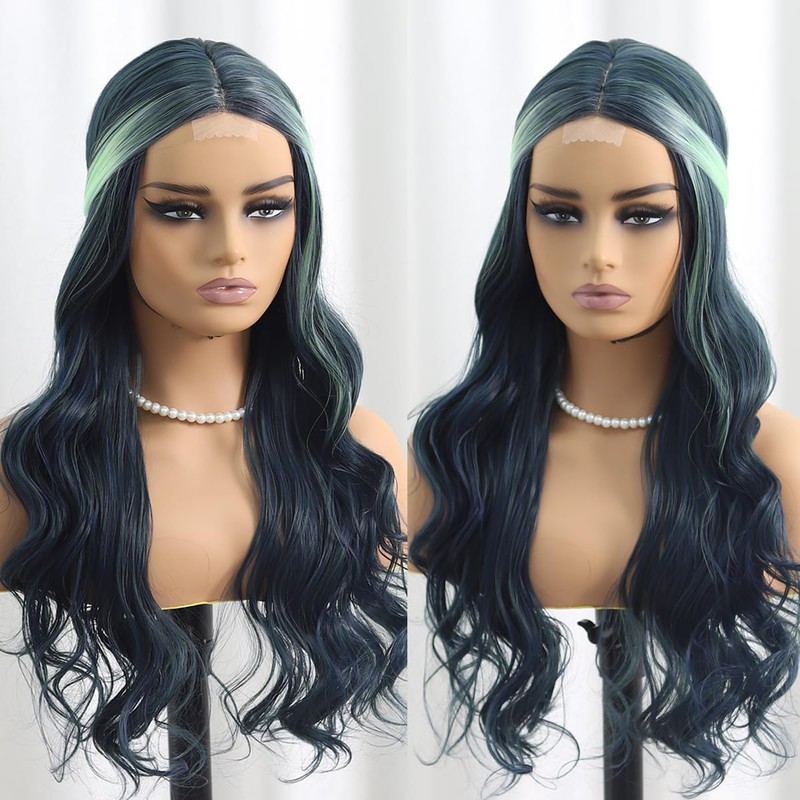 SISIFIRE Highlight Long Deep Wave Wigs for Women Long Curly Small Lace Front Wig Synthetic Heat Resistant Fiber Middle Part Wigs for Daily Party Use