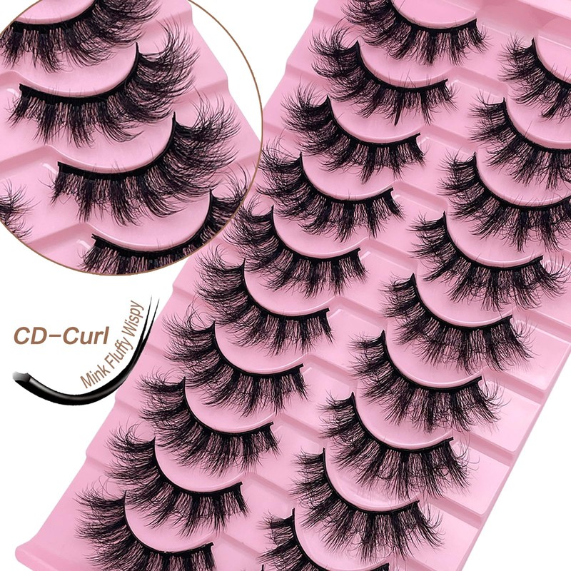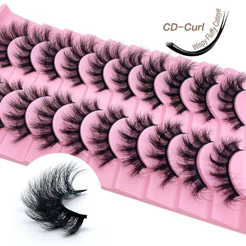 SISIYDY Fluffy Lashes Cat Eye Mink Eyelashes Wispy Dramatic Thick 3D Fox EyeLash 18mm Full Strips Cateye Lashes Fluffy 10 Pairs CD Curl Fake Mink Eyelashes Pack YH016