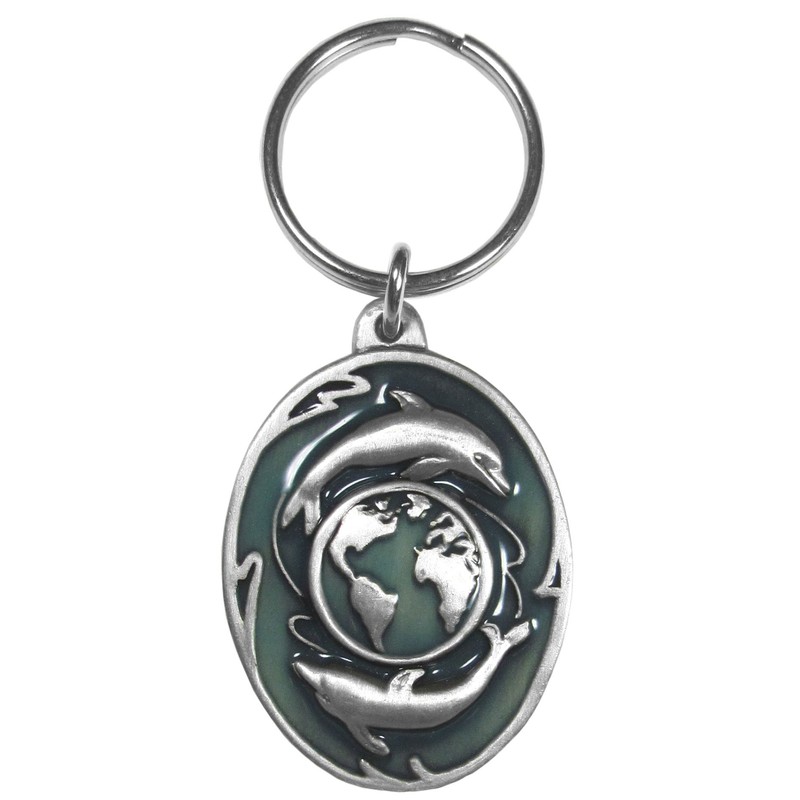 Siskiyou Automotive Metal Key Chain Dolphins and Earth Enameled Details