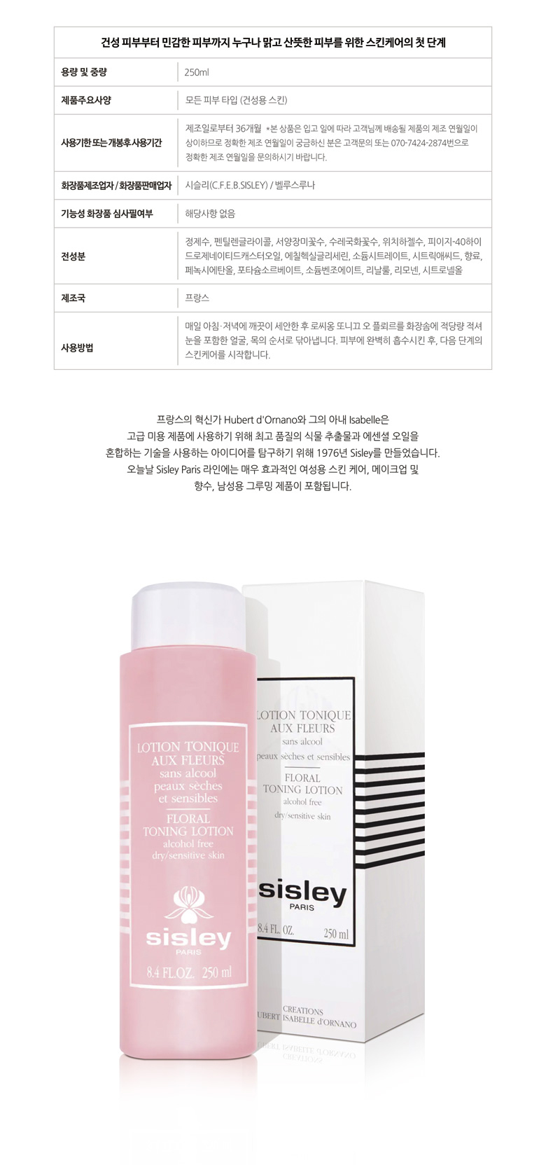 Sisley Rossion Tonique Floral Toning Lotion Alcohol Free Dry/Sensitive Skin 250ml Department Store Duty Free Shop Same Product / 시슬리 로씨옹 또니끄 플로럴 토닝 로션 알코올 프리 드라이/센시티브 스킨 250ml 백화점 면세점 동일 제품