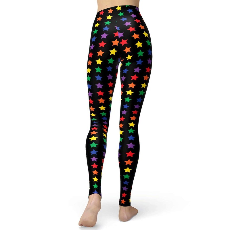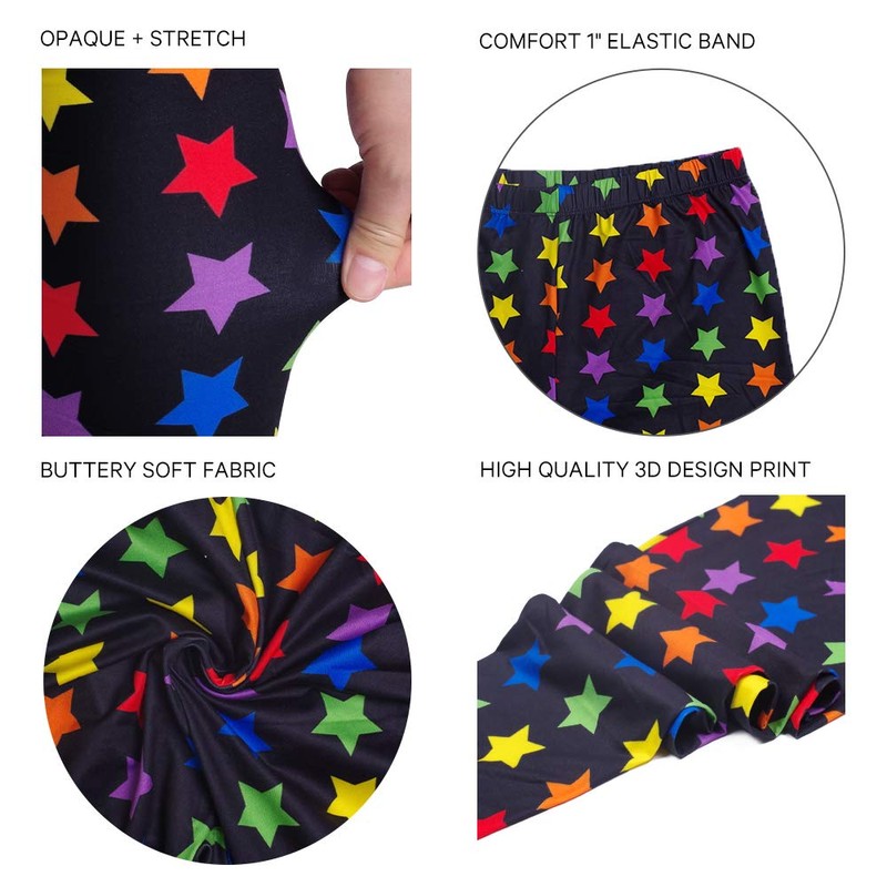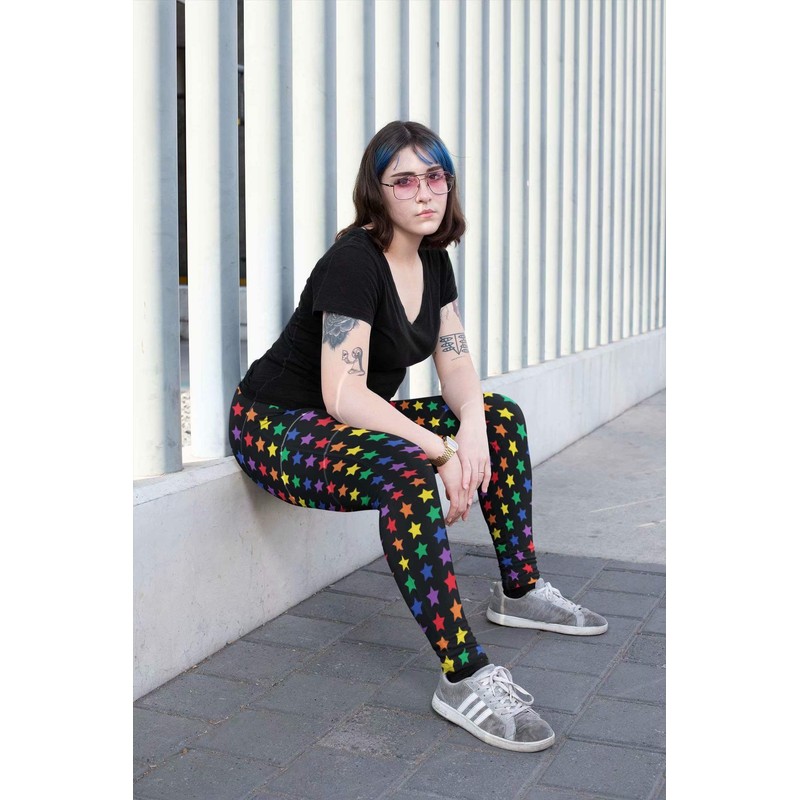 sissycos Women's Rainbow Printed 80s Leggings Buttery Soft Stretchy Pants (Small-Large, Colorful Stars)