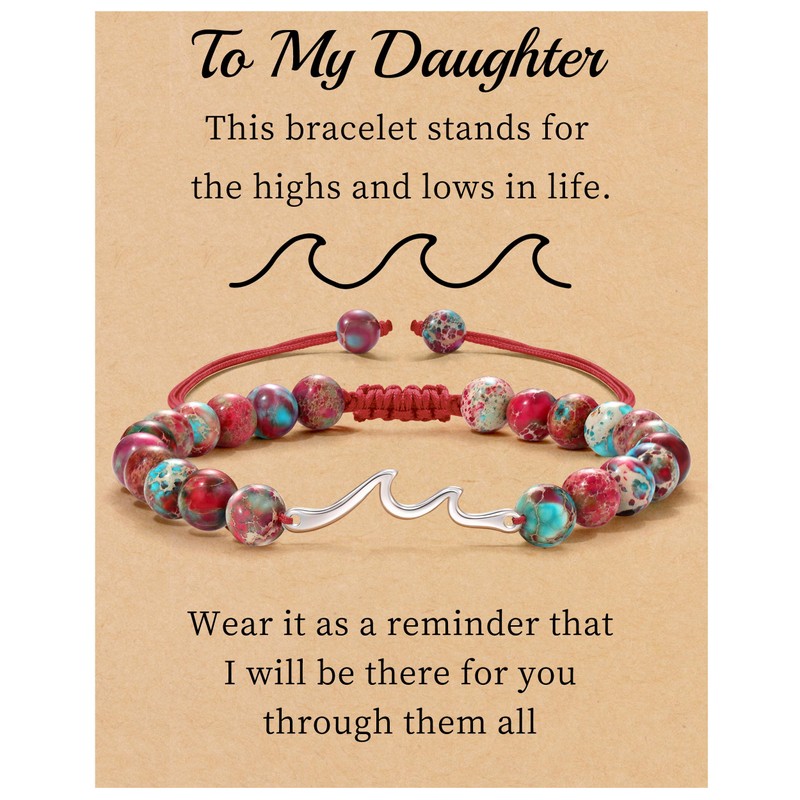 Sistble Daughter Gifts from Mom, Daughter Birthday Gifts To My Bracelet White Gold Wave Bracelet Jasper Natural Stone Love Bracelets for Women Summer Beach Gift Jewelry
