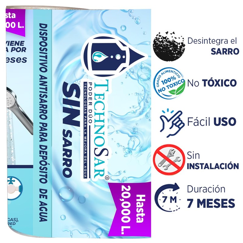 Sistema Antisarro Technosar para Tinacos Cisternas o Cualquier Depósito de Agua Suavizador de Agua Quita Sarro y Descalcificador de Agua con Capacidad de 10000 a 20000 Litros No Necesita Instalación