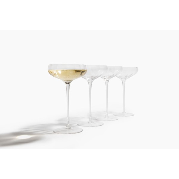 - Expertly crafted from premium-quality glass, our Rounded Coupe Cocktail Glasses boast exceptional clarity and brilliance, ensuring that your favorite libations are showcased in all their splendor. The unique optic texture not only adds a stylish touch but also enhances the visual appeal of your drinks, creating a mesmerizing play of light and color that will captivate your guests and spark lively conversations.
