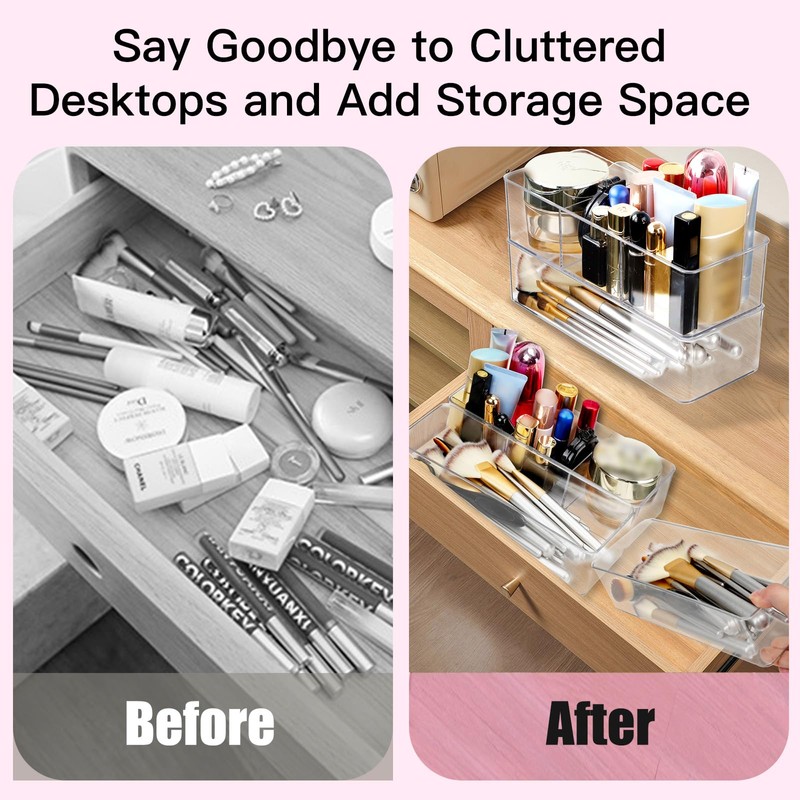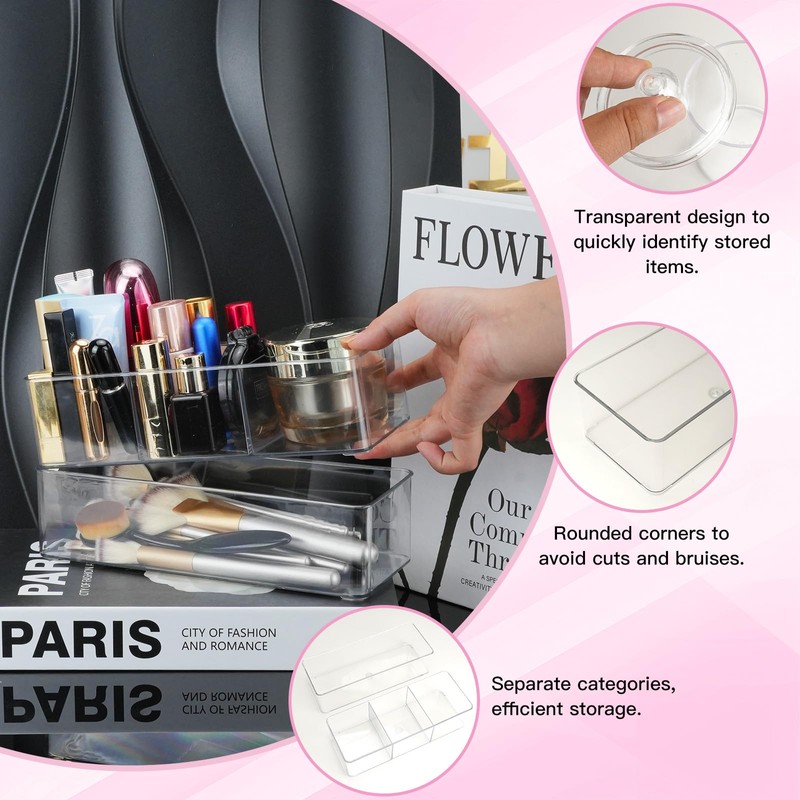 - Einfaches und transparentes Design: Der Kosmetikschubladen-Organisator hat ein offenes und einfaches, stilvolles, transparentes Design, das auf einen Blick leicht zu sehen ist und Ihnen hilft, das Gewünschte schnell zu finden. Spart Ihre Zeit bei der Suche nach kosmetischen Werkzeugen, verbringen Sie Zeit auf Ihr schönes Make-up.