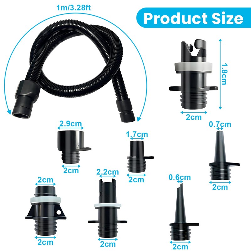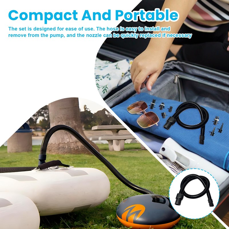- Compact and portable: the air hose set is compact and lightweight, making it easy to carry and store. This air hose kit is a replacement kit for most normal electric air pumps for SUP.