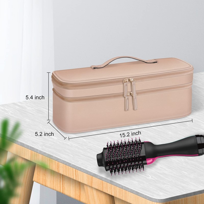 - 【Large Capacity】Double layer design keep all your essentials in one compact organizer bag. Bottom Layer specially designed for Revlon One-Step Original 1.0 and PLUS 2.0 Hair Dryer Brush, Hair Thermal Smoother Cream and more. Top layer with 1 zippered pocket to store hairpins or accessories. 1 mesh pocket with elastic bands for brush, hair clips, hair care essentials, etc.