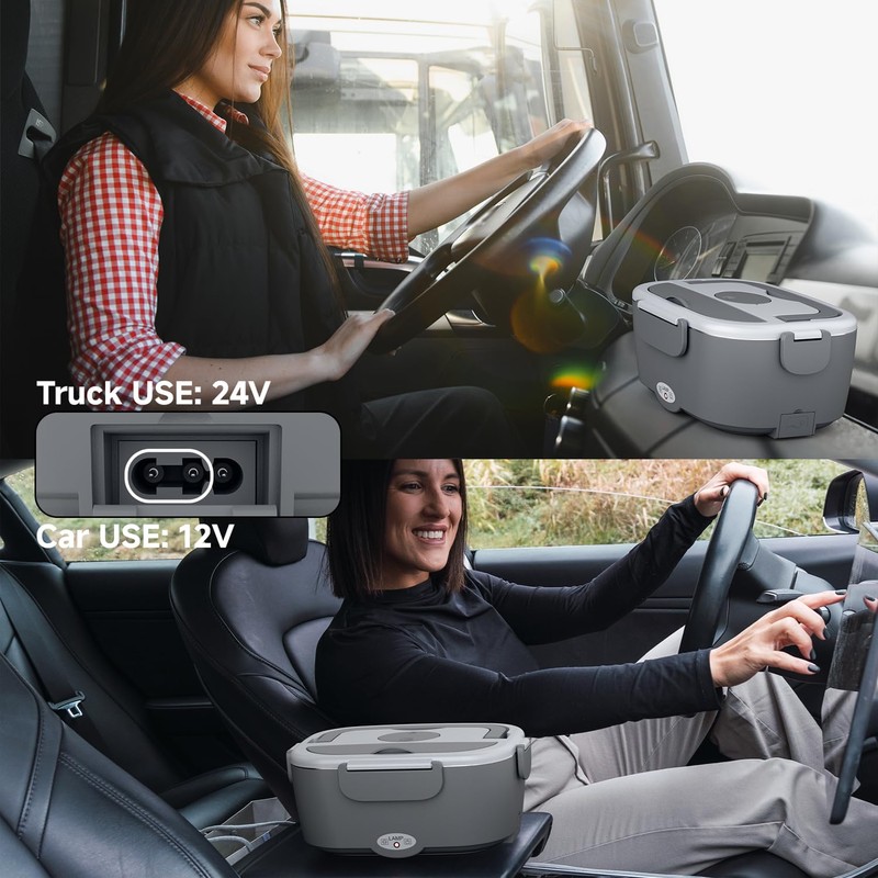 - [3-IN-1 FOOD HEATER] Do you always have cold meals at work, in the car, or on the go? If so, then our portable food heater, the heated lunch box, is tailor-made for you. The electric lunch box contains two different plugs: a work/home plug (110V-220V) and a car or truck plug (12V/24V), suitable for people who work in companies, factories, or cars.