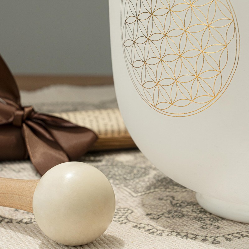 - SITSANG crystal singing bowl set includes: 1 piece of Flower of Life crystal singing bowl 8 inch + 1 piece of sponge padded Bundle Bag + 1 piece of high quality crystal singing bowl suede striker +1 piece of rubber mallet for tapping+ 1 piece of silicone rubber O-ring customized for crystal singing bowls.