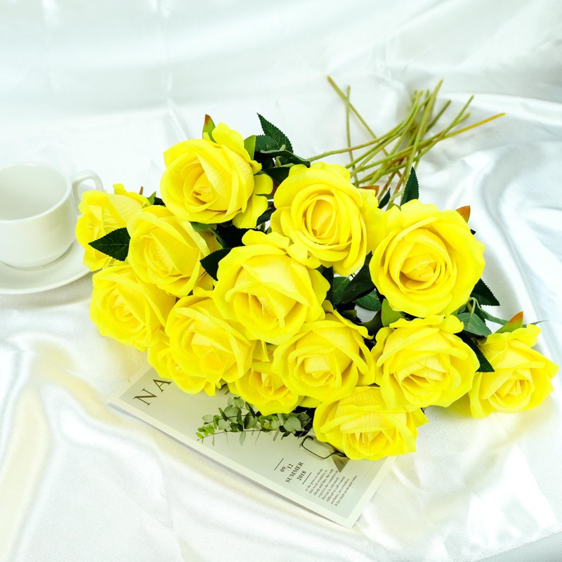 SITUMEIZI 15PCS Roses Artificial Silk Flowers Fake Roses Bouquet with Long Stem Real Touch for Wedding Decoration Party Home Decor(Yellow)
