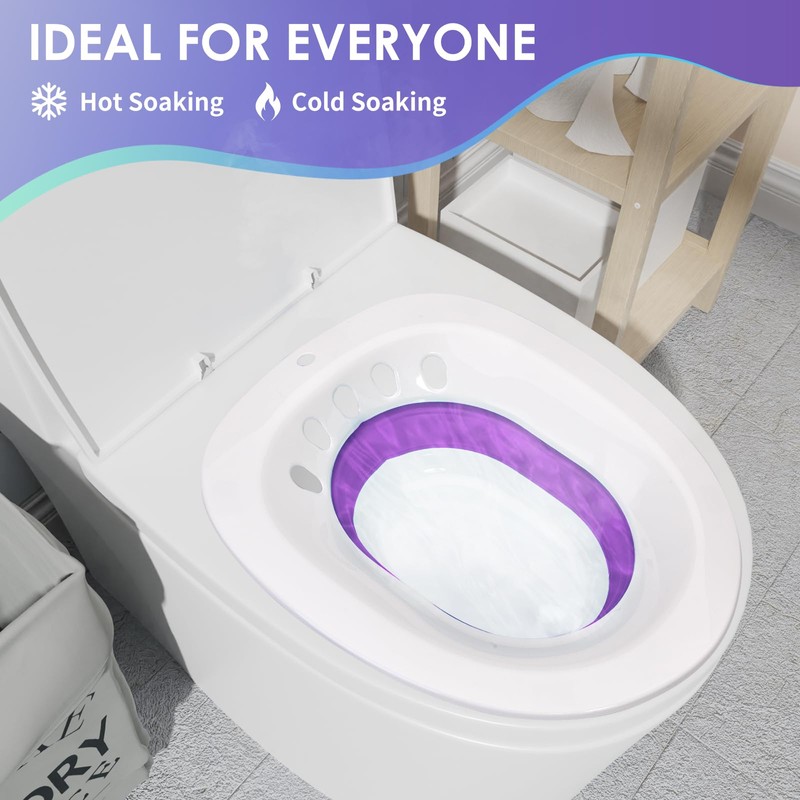 - STURDY DESIGN & MEDICAL GRADE - Sitz bath is made of medical grade bpa free plastic and silicone, with wide seat, deeper bowl, high temperature resistance and no odor. Perfectly fit the human body buttocks.