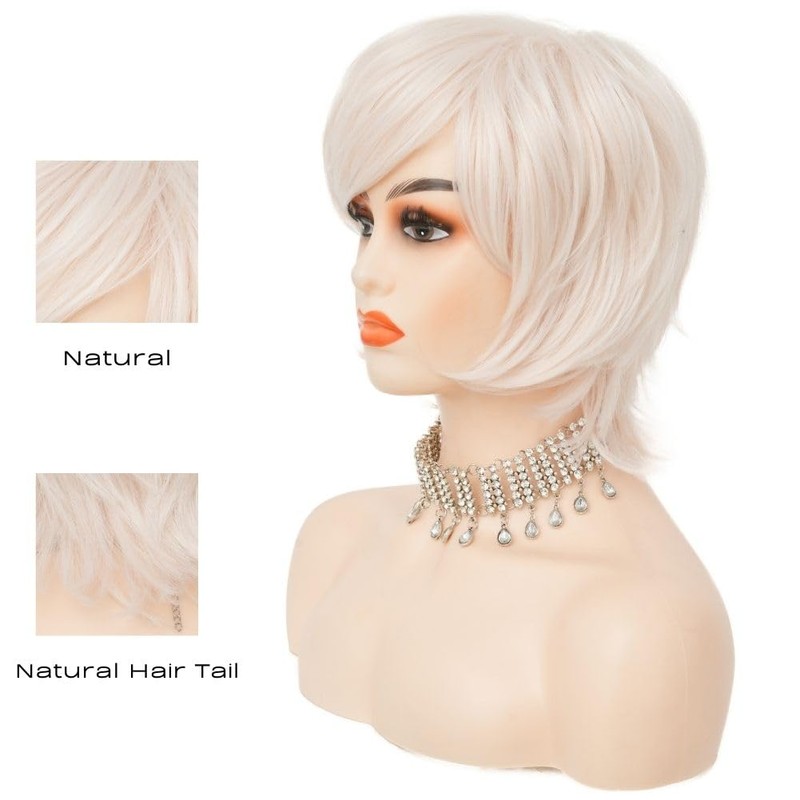 Siudus Blonde Short Wigs for Women Side Part Natural Layered Hair Wig Heat Resistant Synthetic Wig for Daily Cosplay Costume Use (Blonde)