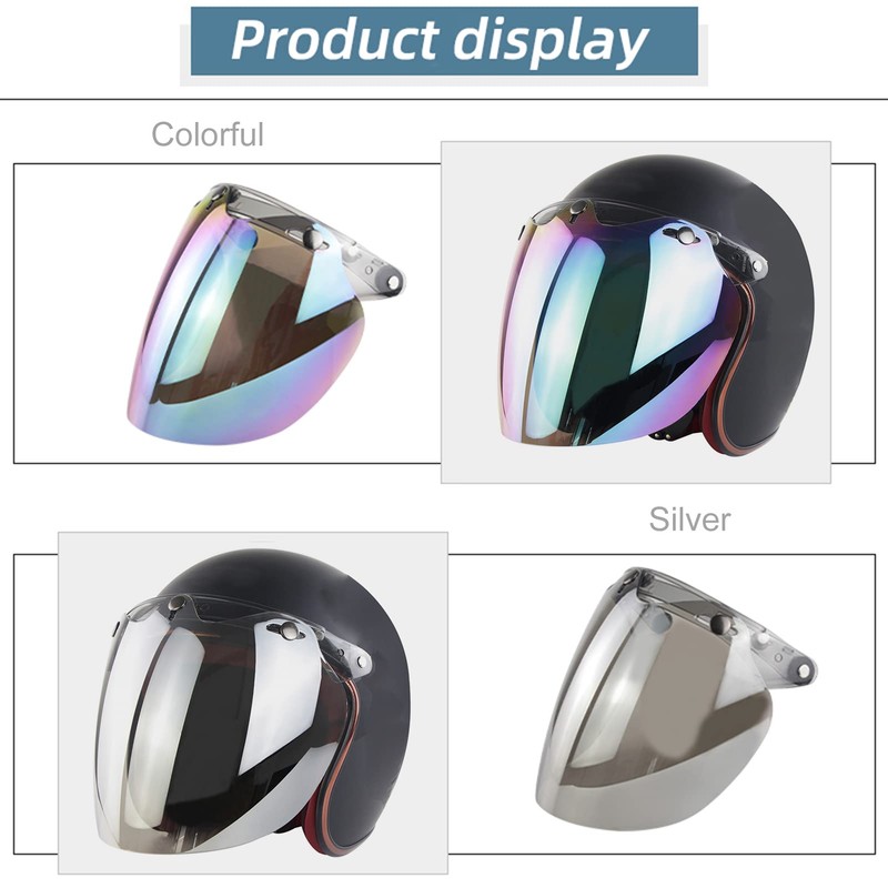Specifications: Material: PC Color: Colorful, Silver, Light Grey, Dark Grey, Transparent(optional) Qty: 1pcs Fitment: open face helmet Product Size: 22cm * 21cm Package Size: 23 * 22 * 5cm Package Weight: 200g Package List: 1 * Motorcycle Helmet Lens Notes: 1. Please allow 1-10mm error due to manual measurement, thanks for your understanding! 2. Item color may show slight aberration due to different shooting light and monitor display.
