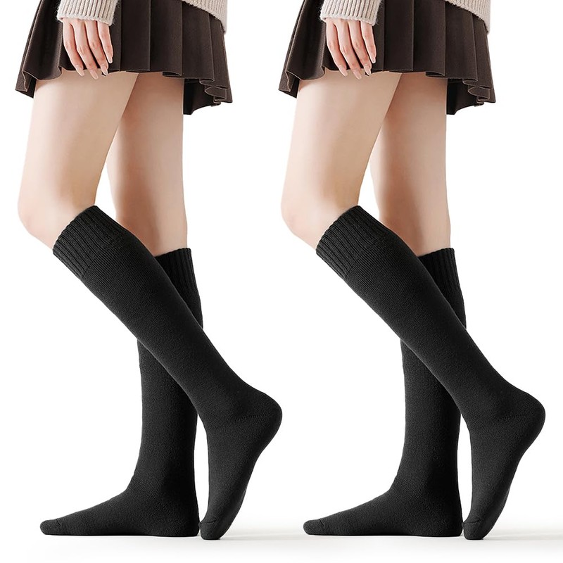 - (Extra Thick Lining Pile, Constant Temperature 38°C): High socks are made of durable material and carefully knitting methods, and double bundled non-slip design that is suitable for your feet and does not fall off, making them very comfortable to wear. These high socks are made with an extra thick pile lining that provides 5 times more heat retention than regular socks, and are extremely thick enough to keep you warm during the cold of winter. It feels as smooth as it is wrapped in a blanket, soft from the knee to the toe, and gently wraps your entire foot, while the thick anti-pill design is used to trap the heat of your feet, creating an incredible 38° C constant temperature. High quality socks provide outstanding heat and cold protection. Stay warm in the cold winter!