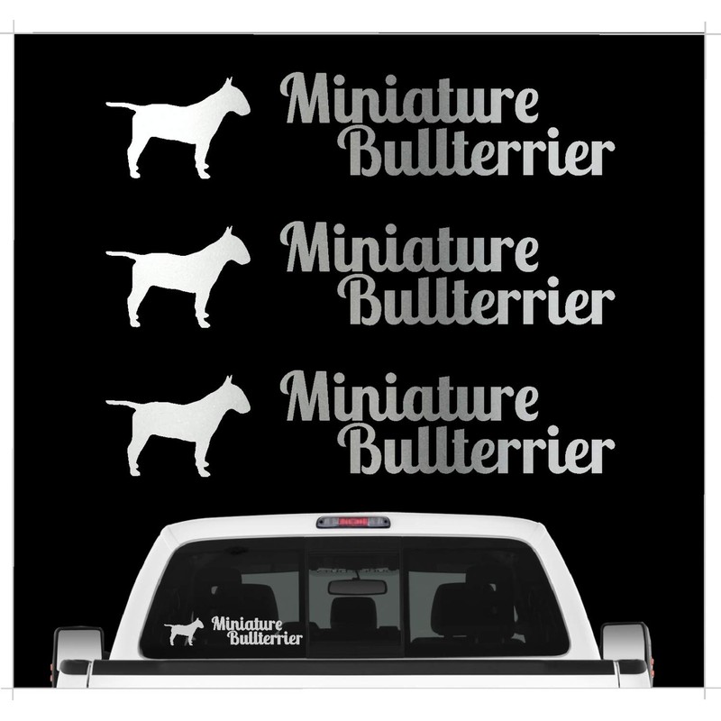 siviwonder Miniature Bull Terrier Mini Bully Sticker Set of 3 Dog Stickers Dog Motif Foil Colour Silver Size 20 cm