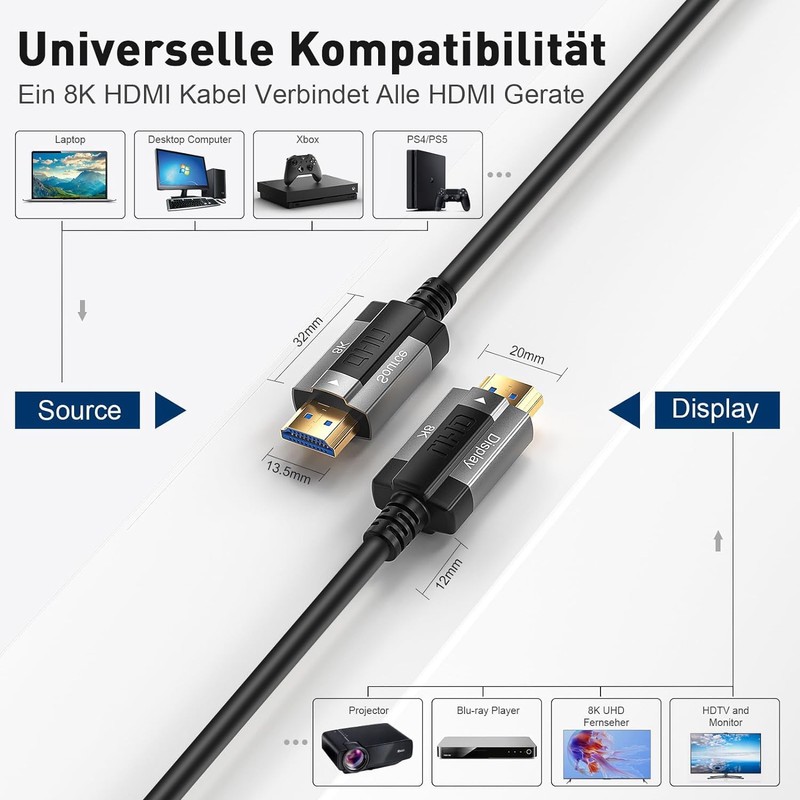 - [Last Revolution 2.1-- 8K@60HZ HDMI Cable]: This 8K HDMI fiber cable uses the latest technology and is compatible with 8K@60Hz and 4K@120Hz to clearly display each particle and process each signal source accurately. With exclusive dynamic HDR technology HDMI 8K and 12-bit colour processing technology, every image in every scene delivers depth, brightness, detail, contrast and a wider colour gamut. Game mode supports variable refresh speeds, maximizes graphics card and CPU value, and is more accurate in processing rendered images.