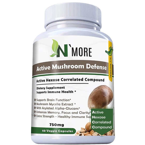- N'more Active Mushrooms Defense formula is a unique blend of the six medicinal mushroom extracts (with acylated alpha-glucans), Shiitake (Lentinula Edodes), Lion’s Mane (Hericium Erinaceus), Reishi, Agaricus Blazei, Cordyceps (Militaris), Turkey Tail (Coriolus Versicolor), formulated to provide deep immune system support, Enhances Memory & Focus Supports Brain Health & Cognitive Function Increase Energy level & Stamina Reduce Stress & Fatigue