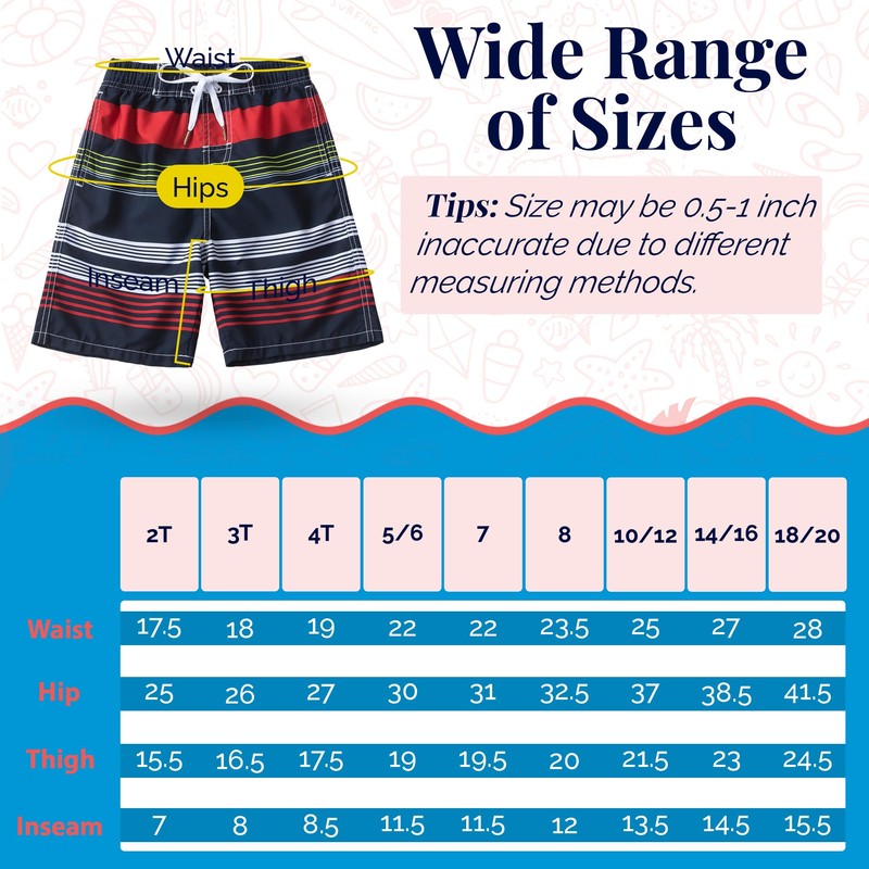• Optimal Fit for Growing Boys: Available in a range of sizes from 5/6 to 18/20, these boys boardshorts are made to comfortably fit growing boys, ensuring they can enjoy their swimwear for seasons to come. They also comes with a silky soft mesh lining.