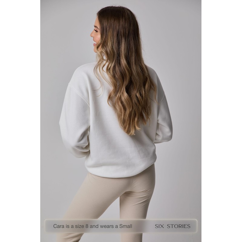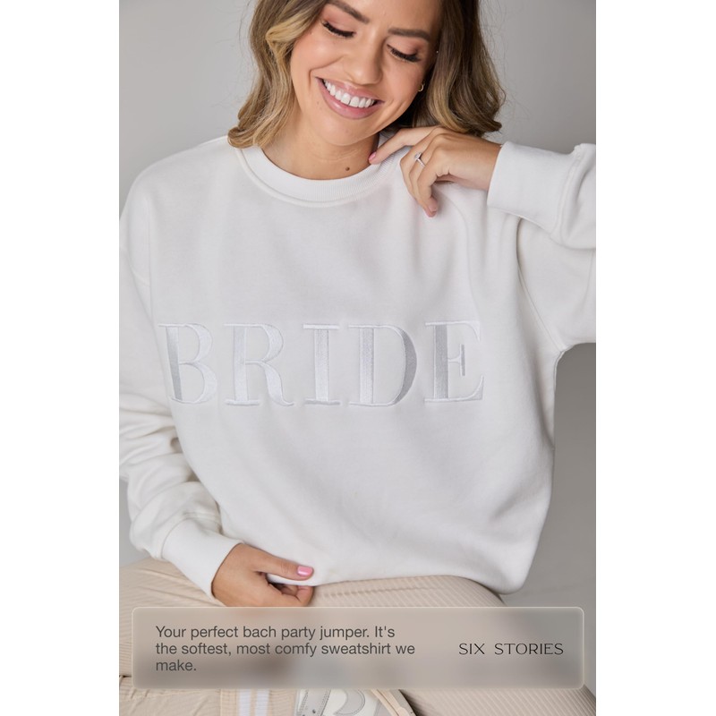 Six Stories Bride Sweatshirt for Cozy Bach Parties | Comfy and Stylish Bridal Shower Gift for the Future Mrs | Soft, Oversized & Embroidered Crewneck Sweater Perfect for Engagement Events | X-Small