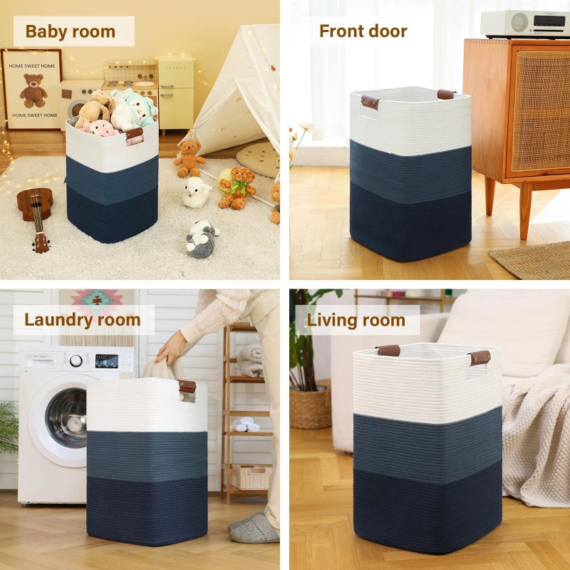 Upgraded Material & Structure: SIXDOVE clothes hamper made of high-quality cotton rope, safe, and odorless, which is good for babies, kids, elders, and pets. In addition, the finer stitching & reinforced interface make our storage basket more sturdy