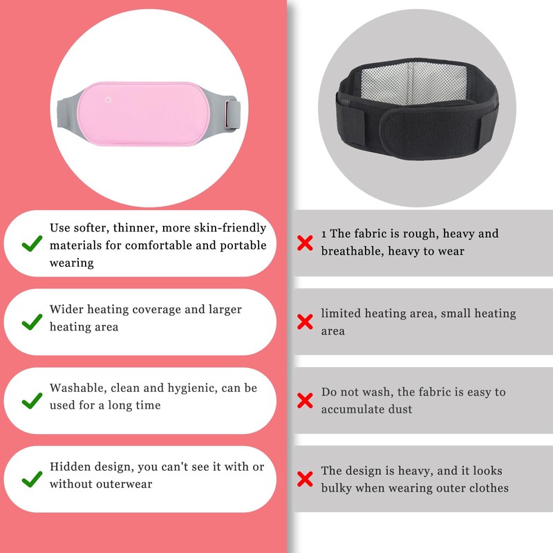 • COMFORTABLE EXPERIENCEThe Heating Pad for Period Cramps from SI XIA is designed to provide a solution for women's issues which are abdominal discomfort or menstrual cramps caused by menstrual period. If the abdominal gets cold, it will lead to menstrual pain when their period comes and other sicknesses, so every girl needs to warm her belly, Enhance your body circulation, to make feel more comfortable when relaxing