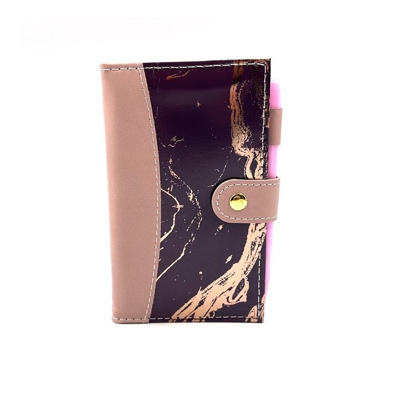 Sixstore Undated Planner Slim Diary Soft Leather Feel 16 x 8.5cm Size Journal Notebook with Pen (Pink Marble)