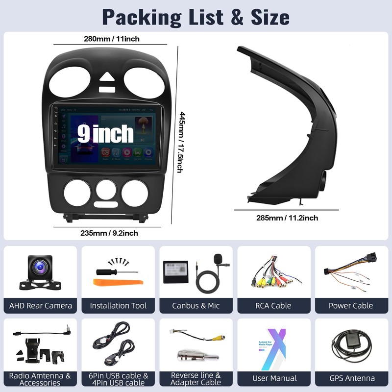 - 【Android Car Stereo for Volkswagen Beetle 2004-2010】The Android Car Stereo is for Volkswagen Beetle 2004 2005 2006 2007 2008 2009 2010 . Plug and play, easy to install, with android 13 system, 2GB (RAM) + 64GB (ROM) memory. Note: this car radio is for basic version only. We offer online help and user manual, please find us