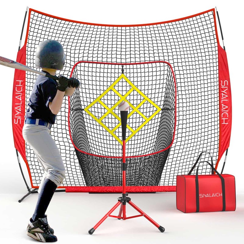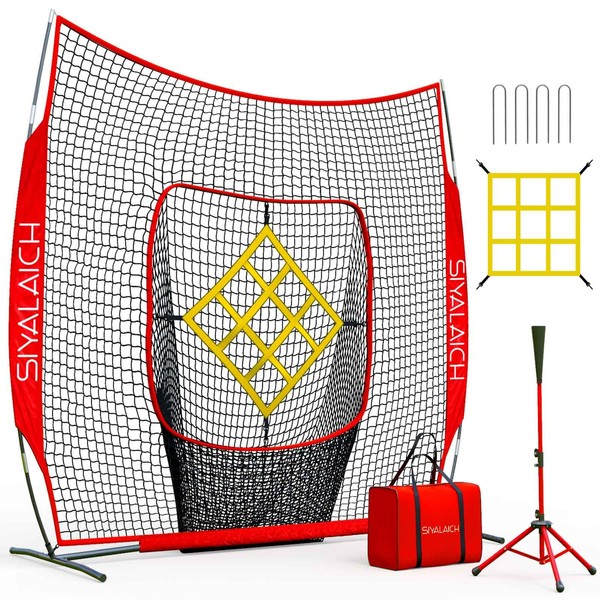 SIYALAICH Portable Baseball Net & Softball Net 7 ftx7 ft,Baseball & Softball Tee and Net,Pitching,Batting Net,Swing Practice Net,with Strike Zone,for Kids and Adults of All Skill Levels