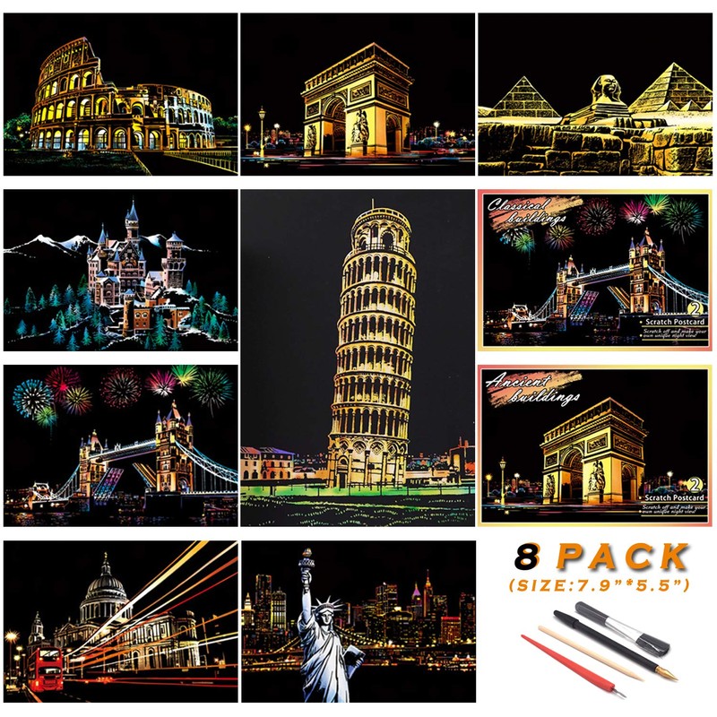 SiYear Scratch Paper Rainbow Painting Sketch, City Series Night Scene,Scratch Painting Creative Gift,Scratchboard for Adult and Kids with 4 Tools