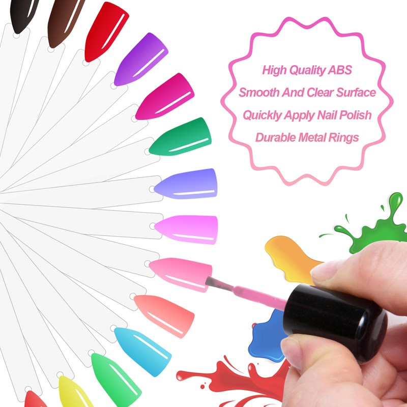 - Easy To Store: This nail display stick has a ring for easy storing and carrying, and the ring is easy to open, so you can remove the nail display stick at any time to change the order or delete it. You can name the nail polish color on the stick to make it easier for you to tell the difference.