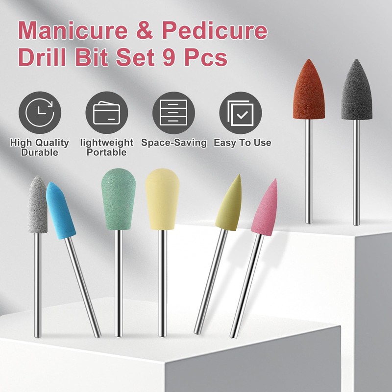 - Easy To Use: This silicone nail drill bit set comes in different sizes and shapes that can meet your different needs. Mainly used to polish and manicure nails, keep nails beautiful and neat, polish uneven nails, easy to use, very beginner friendly, suitable for professional nail technicians and home manicure and pedicure use.