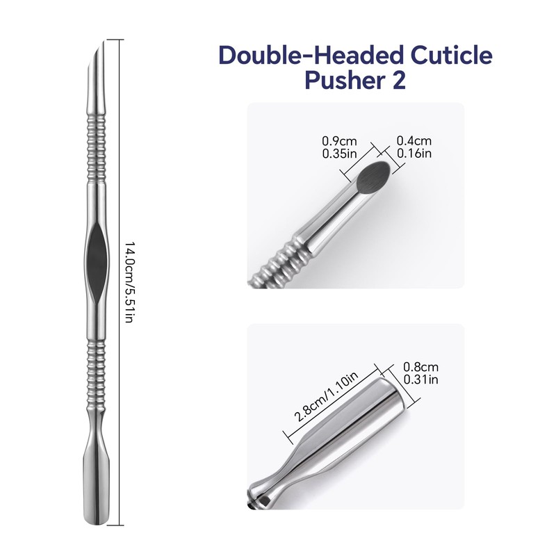 - 【High Quality Materials】This dual-ended cuticle pusher is made of high-quality stainless steel material for durability and easy cleaning. And it is compact, lightweight, easy to carry, making it an ideal tool for keeping nails or toenails beautiful while traveling. It can also help you comfortably and efficiently care for your nails and toenails at home.