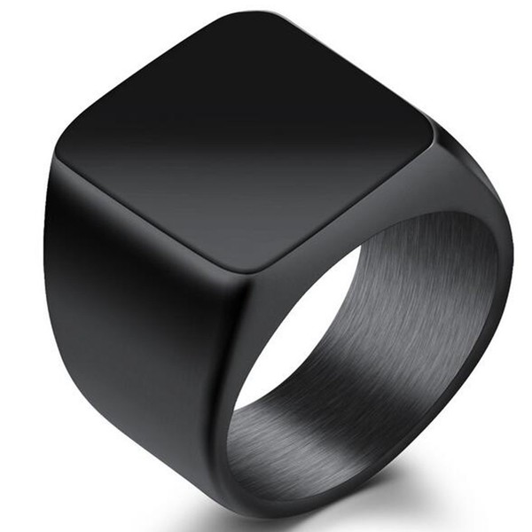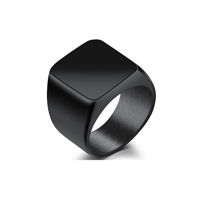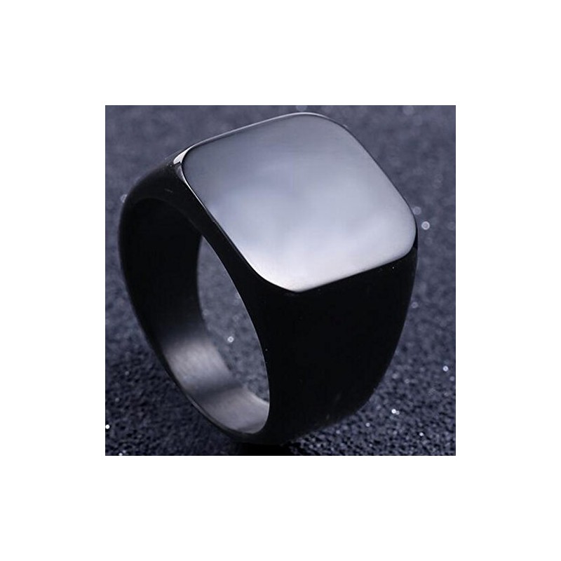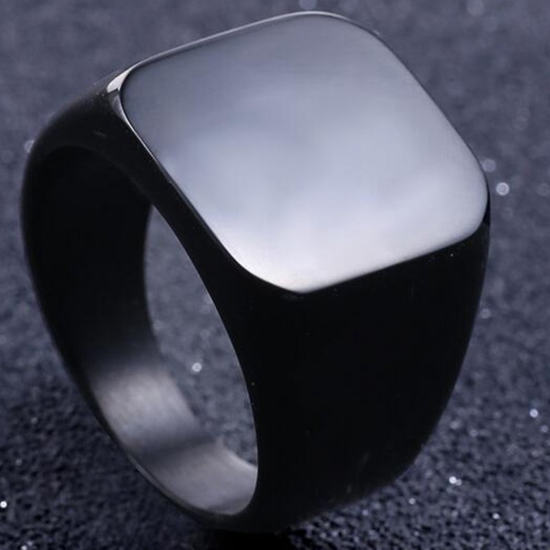 Size 5-15 Stainless Steel Signet Ring Black Silver Classical Simple Plain Cocktail Husband Father Valentine Gift (Black, 15)