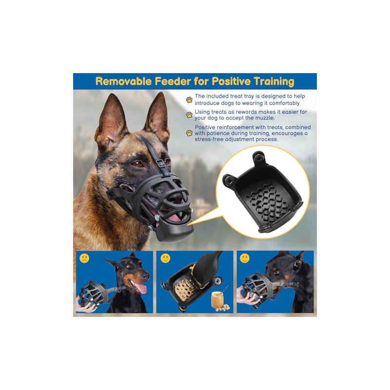 Size M Snap-on Treat Cover Designed for BARKLESS Anti-Scavenging Basket Muzzle, Extra Removable Slow Feeder Tray to Help Dogs Adjust to Mouth Guards