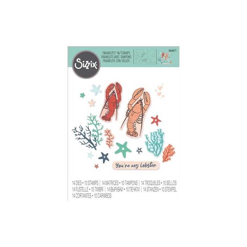 • YOU'RE MY LOBSTER - The You're My Lobster Framelits Die Set by Sizzix is your ultimate companion. This 14 pack die set also includes a 10 pack of stamps and is perfect for creating heartfelt gifts, romantic gestures, or simply spreading joy to your nearest and dearest. Included in this set you will find adorable lobster-themed designs including 2 lobsters, starfish, seaweed and the phrase ‘you’re my lobster’. This die set is compatible with the Sizzix Sidekick as well as larger Sizzix machines.