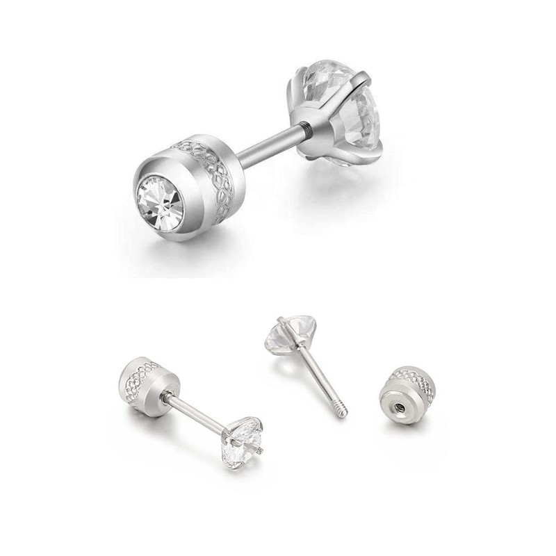 SJBAUTYO 's elegant set of silver diamond stud earrings are made of hypoallergenic and nickel-free zirconium silver, suitable for sensitive ears.