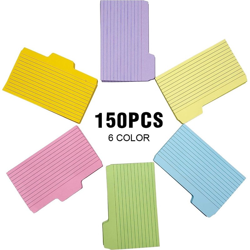 - Practical lined index cards - 150 cards in 6 colours (25 of each) provide plenty of space for notes, study or work. Ideal for home, school, office and travel. Perfect for writing messages, greeting cards, bookmarks, notepads and much more.