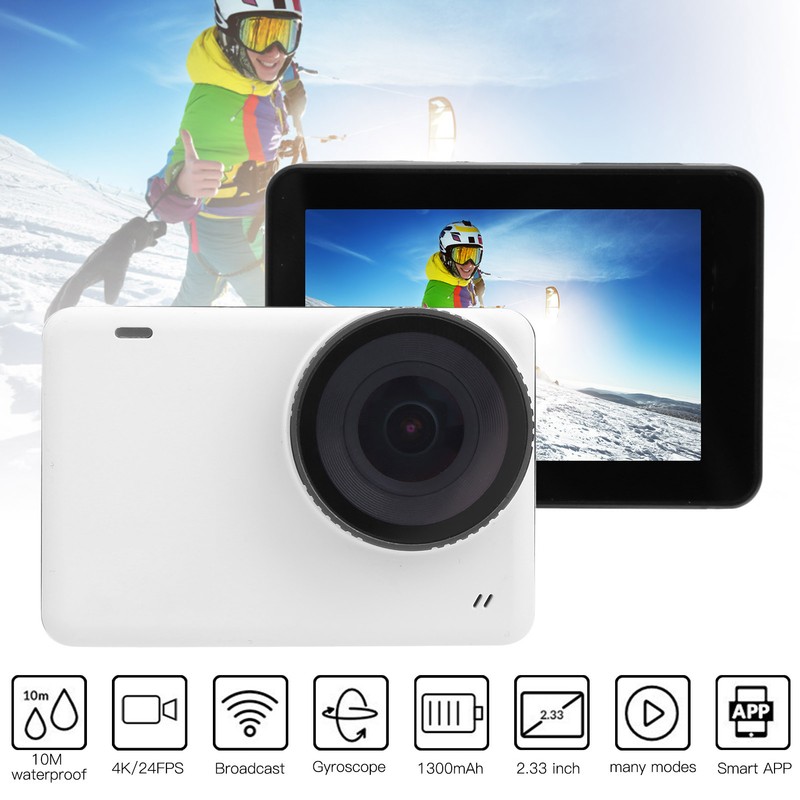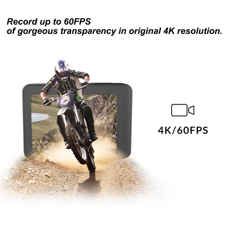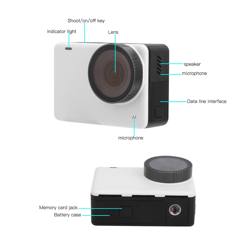 1、Bare sport camera waterproof to 10 meters/32.8ft. Record original 4K resolution up to 60fps 2、Real time live and enjoy life, let the world see the story you tell. 3、The built‑in multi‑directional EIS sensor can detect the direction of lens shake, and make dynamic compensation for the shooting picture, which can greatly reduce the picture blur caused by hand shake. 4、APP supports quick sharing of pictures and videos to WeChat, Weibo, QQ and other social platforms, and also supports picture and video editing. 5、170° ultra-wide-angle lens, when shooting landscapes, buildings, group photos and other scenes, the imaging of the wide-angle lens is magnificent and the sense of space is strong.