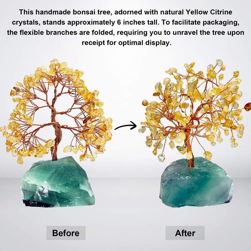 - Artisan-Crafted Natural Crystal Details Unlike mass-produced Artificial Trees, every branch features hand-twisted copper wires holding 300+ unpolished crystals (rose quartz, amethyst, citrine). The raw wood/crystal base showcases nature's authentic patterns. Note: Slight variations in crystal colors and branch angles prove its genuine handmade origin - no two trees are identical.