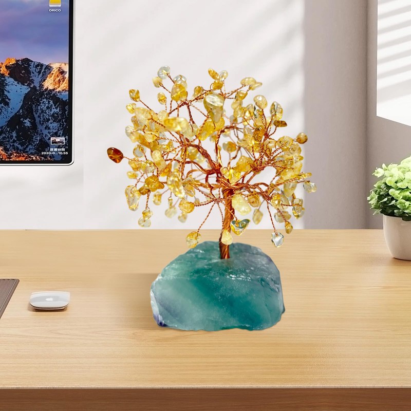 SJGUOJI Natural Citrine Healing Crystal Tree on raw Green Aventurine Base, Natural Stone Base Money Tree with Copper Wire, for Home Office Desk Decorations, Wealth, Good Luck
