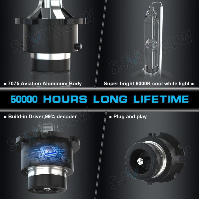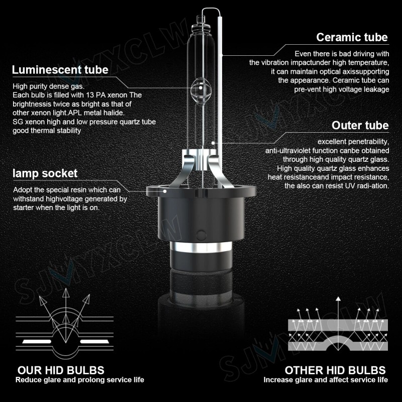 Long Lifespan. High quality xenon gas , tungsten metal electrode. D2S Xenon HID headlight bulbs reach the high production standard and perfect final inspection, providing a service life of 50000 hours for long-lived illumination
