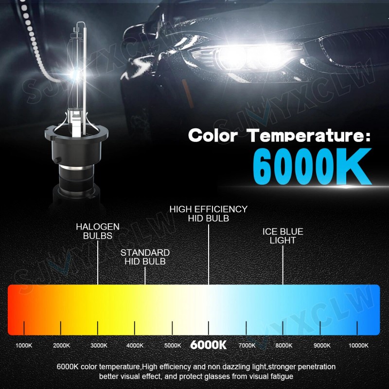 Super Bright. This D2S HID Xenon bulb feature a great 6000K white light, 100% quartz anti-UV glass, excellent in performance. Up to 3800 Lumens, more brighter than original standard HID Bulb. Beam pattern standard, safe driving