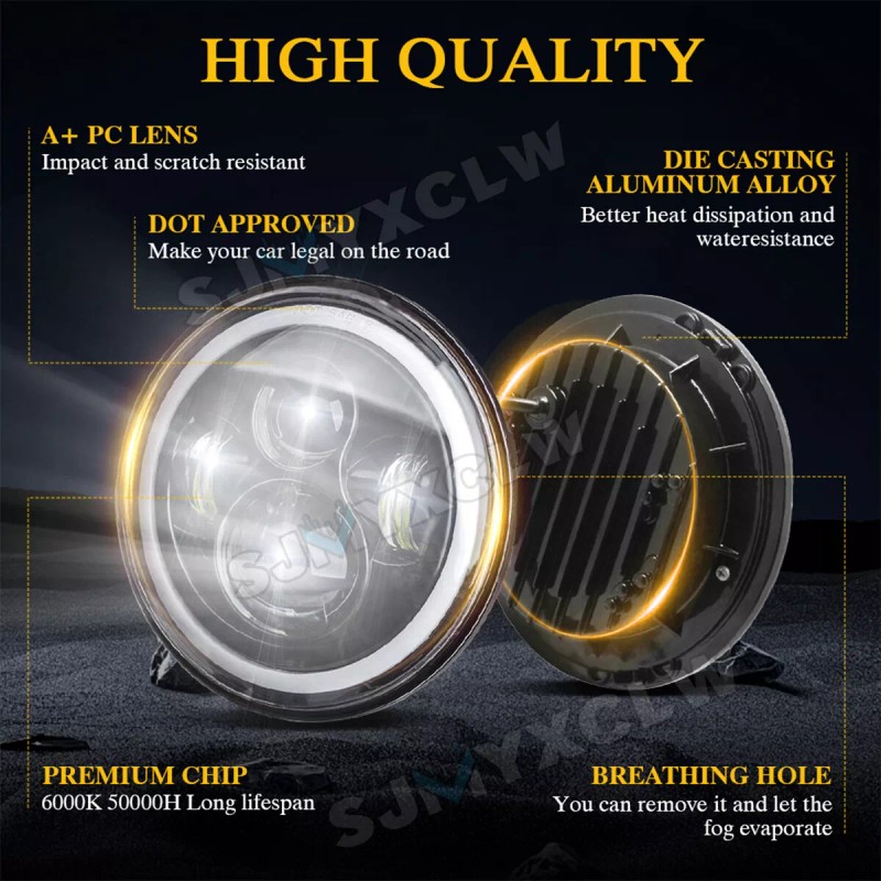 SJMYXCLW Pair 7" Round Led Headlights High Low Beam For Ford Mustang 1965~1973 Brightest