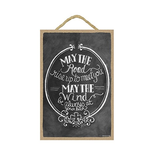 SJT Enterprises, INC. May The Road Rise up to Meet You, May The Wind be Always at Your Back 7" x 10.5" Wood Plaque Sign Featuring The Chalk Artwork of Ampersand (SJT14836)