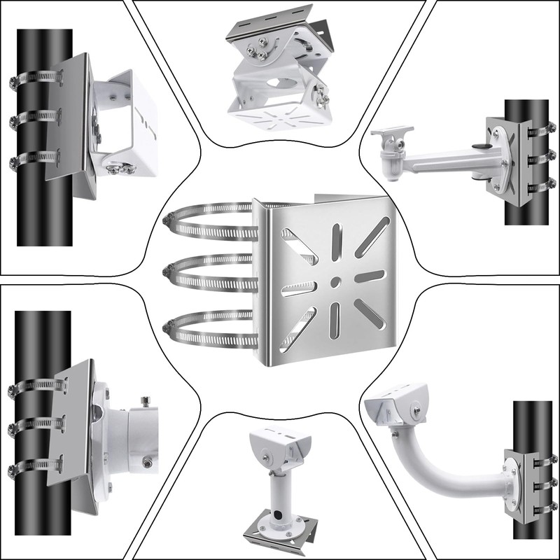 - Multifunctional application: it is very practical and can be used for installing most surveillance bracket devices on the market. Mast holder stainless steel holder kit can be installed on columns, corner brackets, street lamp poles, ceilings and walls. Ideal for connecting security cameras, solar panels, LED lights and a variety of other devices