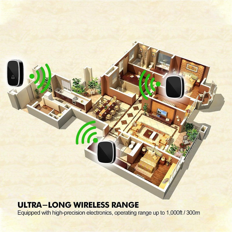 - 🎁【ULTRA-LONG WIRELESS RANGE】Equipped with high-precision electronics, operating range up to 1,000ft / 300m, one or more receivers suitable for one or more storey homes. Receivers can be placed on each floor and buttons can be installed at the front and back doors.
