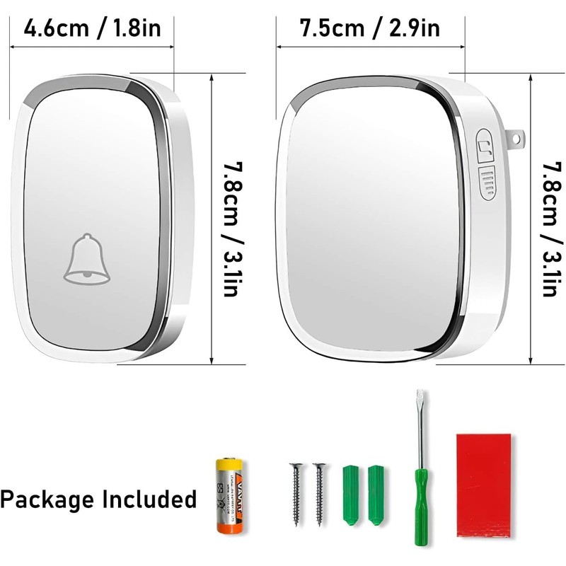 - 🎁【WHAT YOU CAN GET AND THE QUALITY ASSURANCE】1 x transmitter (battery included), 2 x Plug-in Receiver, 1 x Adhesive patch, 2 x screws, 2 x anchors, 1 x screwdriver. Free lifetime technical support and 12-month manufacturer's warranty.