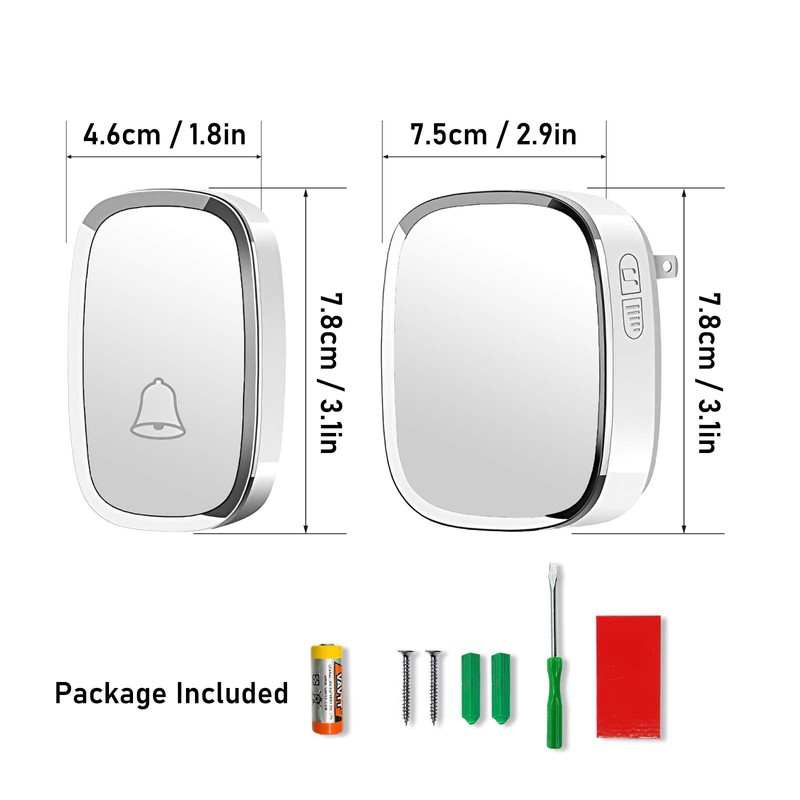 - 🎁【36 MELODIES & 4 VOLUME 】Waterproof wireless doorbell receiver features 36 chimes and 4 level adjustable volume(0 dB to 110 dB) to meet your needs for different occasions. You can program your different door chime for your 2 receivers.
