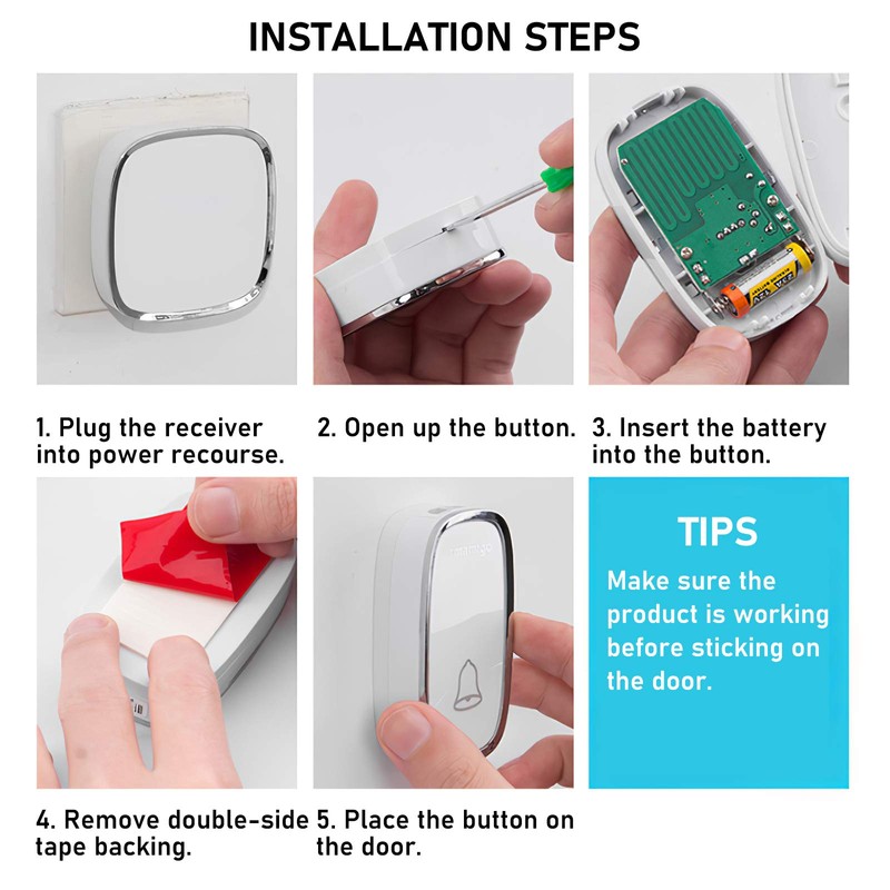 - 🎁【MULTI USE DOORBELLS】It is fit for home, apartment, office, villas and more. You can use our doorbells to train dogs, using it to quiet down classrooms, seniors and disabled use doorbells as assisted living call pagers! Ensure that you will not miss any visitors, you can hear the sound even from the back garden. This product is a good choice for houses and townhouses.
